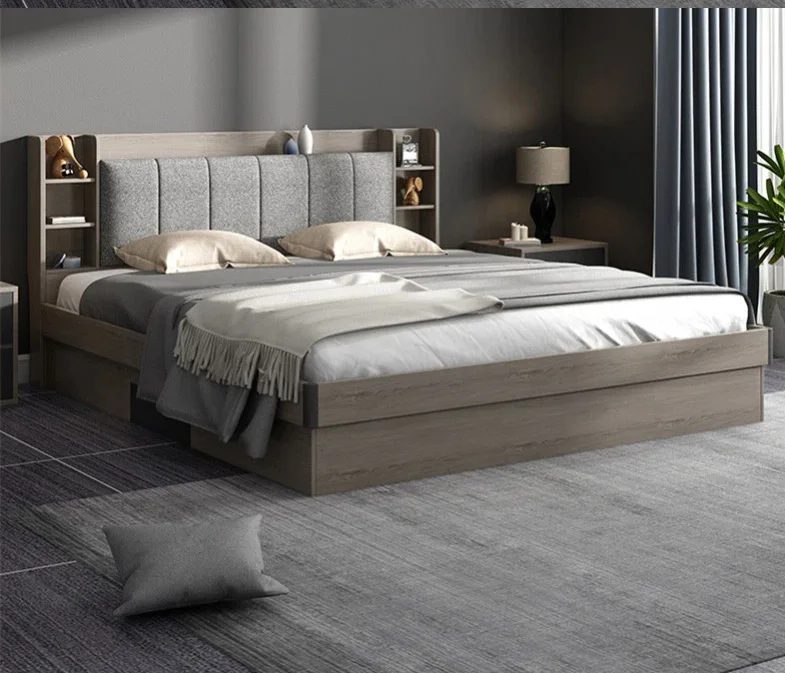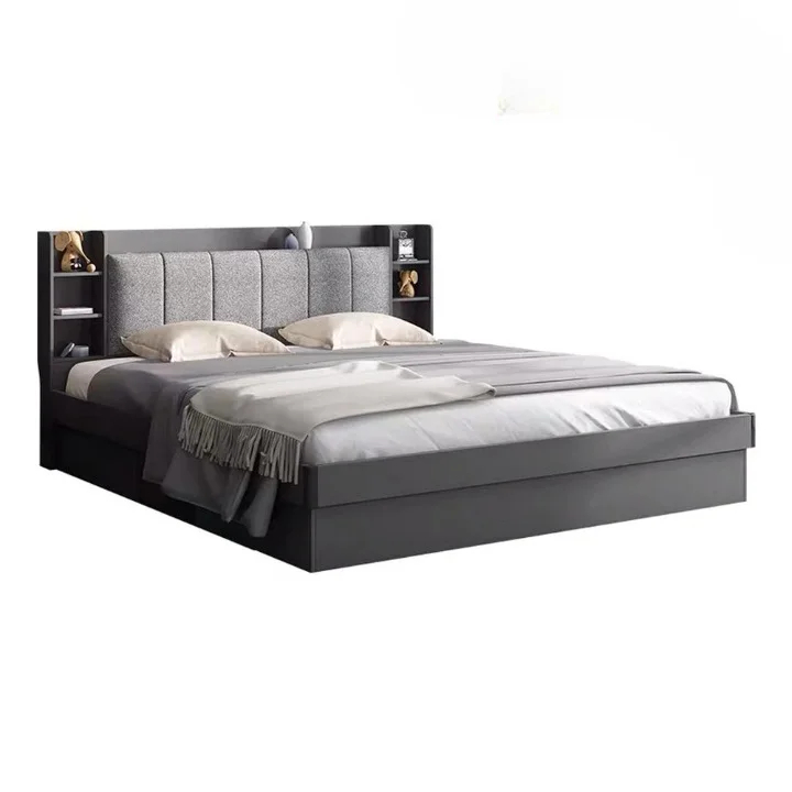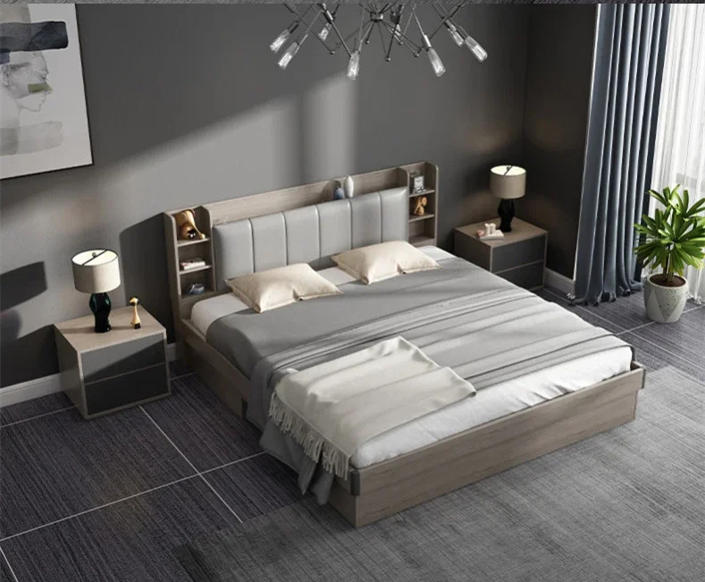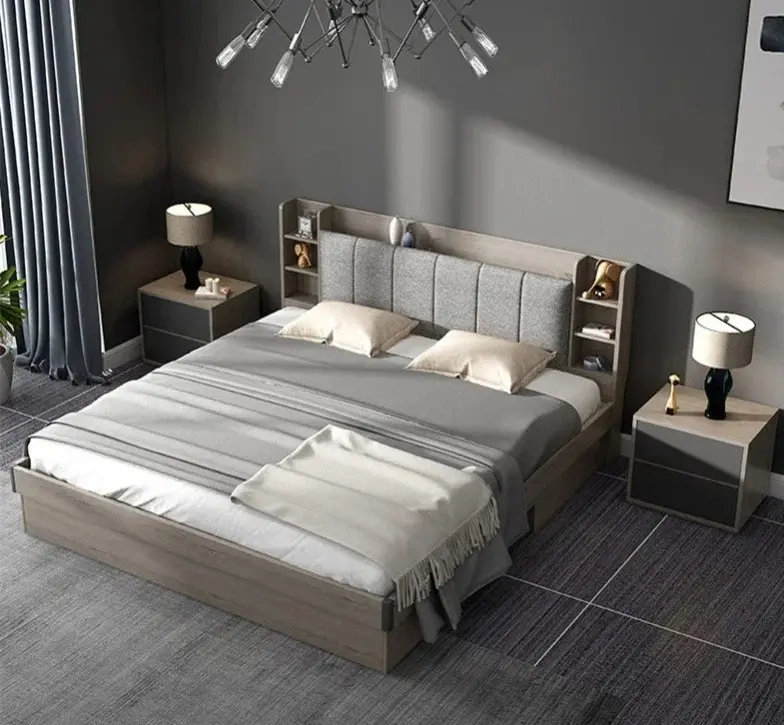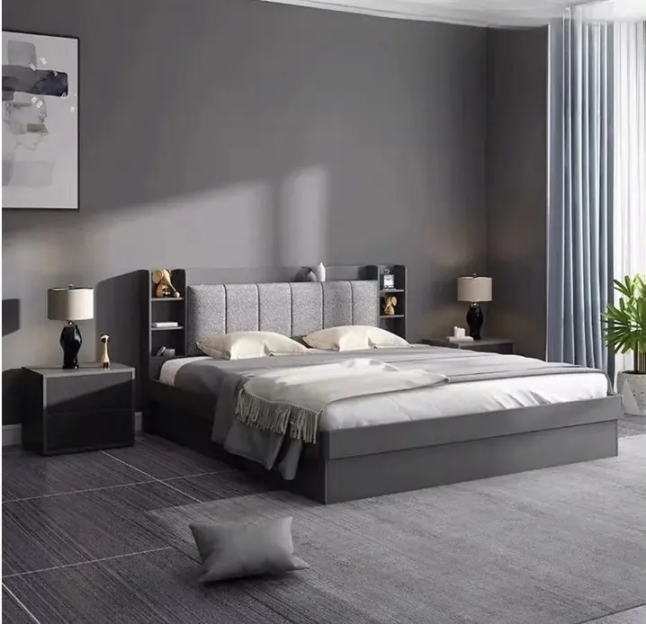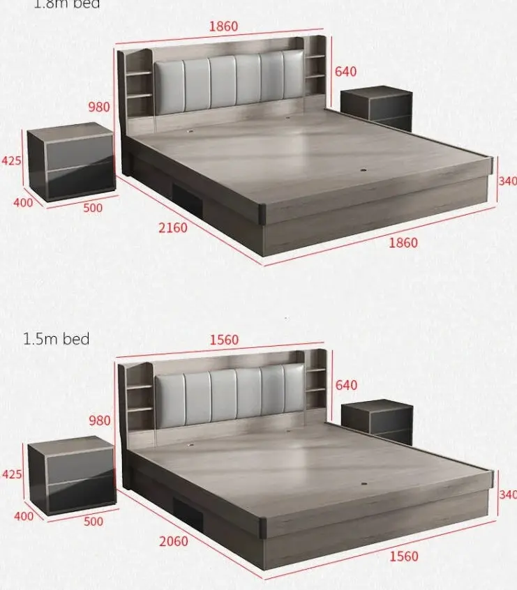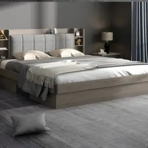 هذا السرير مصمم ليكون القطعة الأساسية في غرفة النوم: شكل حديث بلمسة فاخرة، وتنجيد قماشي يمنح إحساسًا دافئًا ومريحًا عند الاستخدام اليومي. وجود الكمودينة بجانبه يرفع من مستوى التنظيم، بحيث تكون أغراضك الأساسية قريبة وبشكل مرتب دون فوضى.
