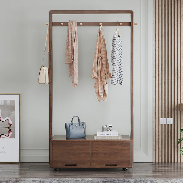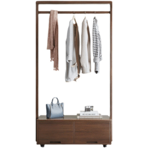 تتميز علاقة الملابس بوحدات للتخزين المدمج وتصميم حديث تعمل بشكل جيد في تعليق الملابس. تتميز بلمسة نهائية محايدة تنسق مع أي ديكور تقريبًا ، كما أن سطح علاقة الملابس المصنوعة من الخشب الام دي اف يمنحها بنية متينة إلى جانب تصميم ممتع.