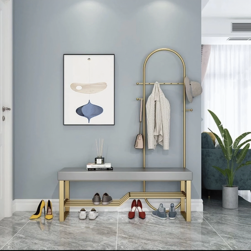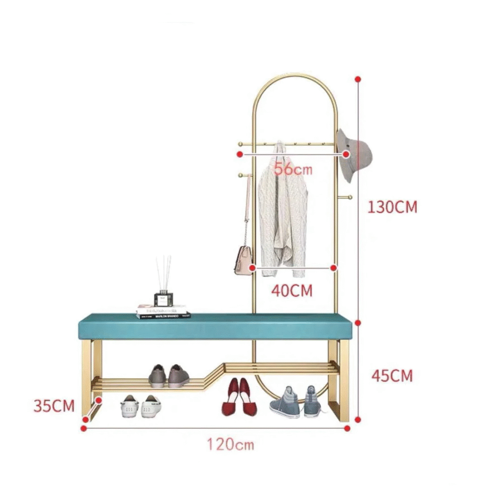 تتميز علاقة الملابس بمقعد ورف وتصميم حديث تعمل بشكل جيد في تعليق الملابس وتخزين الأحذية . تتميز بلمسة نهائية محايدة تنسق مع أي ديكور تقريبًا ، كما أن سطح علاقة الملابس المصنوعة من الخشب الام دي اف يمنحها بنية متينة إلى جانب تصميم ممتع.