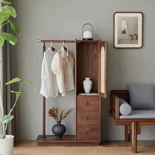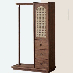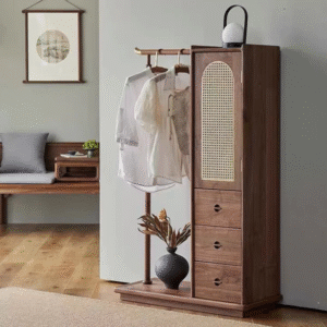 تتميز علاقة الملابس بوحدات للتخزين المدمج وتصميم حديث تعمل بشكل جيد في تعليق الملابس. تتميز بلمسة نهائية محايدة تنسق مع أي ديكور تقريبًا ، كما أن سطح علاقة الملابس المصنوعة من الخشب الام دي اف يمنحها بنية متينة إلى جانب تصميم ممتع.