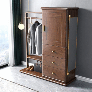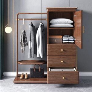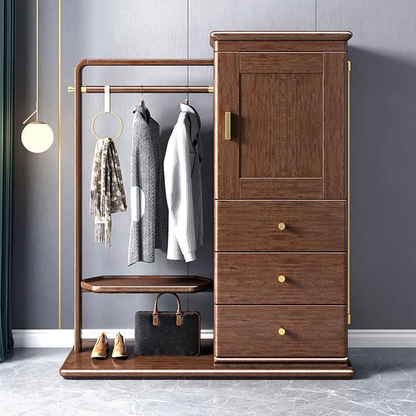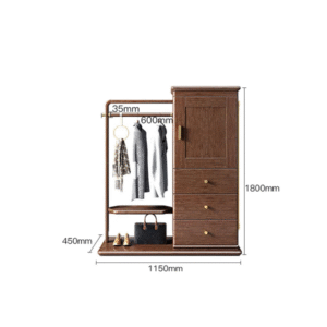 تتميز علاقة الملابس بوحدات للتخزين المدمج وتصميم حديث تعمل بشكل جيد في تعليق الملابس. تتميز بلمسة نهائية محايدة تنسق مع أي ديكور تقريبًا ، كما أن سطح علاقة الملابس المصنوعة من الخشب الزان يمنحها بنية متينة إلى جانب تصميم ممتع.