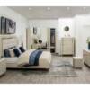 - عدد القطع: 6 (سرير، 2 كومودينو، خزانة ملابس، تسريحة مع مرآة، شيفونيرة أدراج).