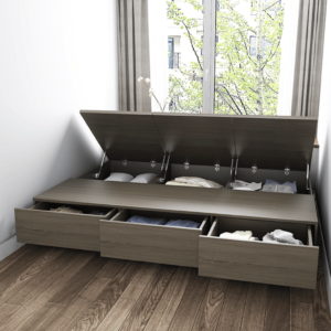 - السرير كبير ومريح للغاية يوفر مساحة كافية لنوم شخصين ويحتوى على مساحة تخزين أسفله سهل الوصول إليها يمكن استغلالها في تخزين المفروشات والأغراض المختلفة.