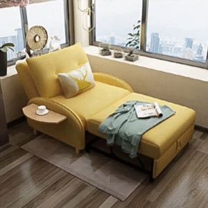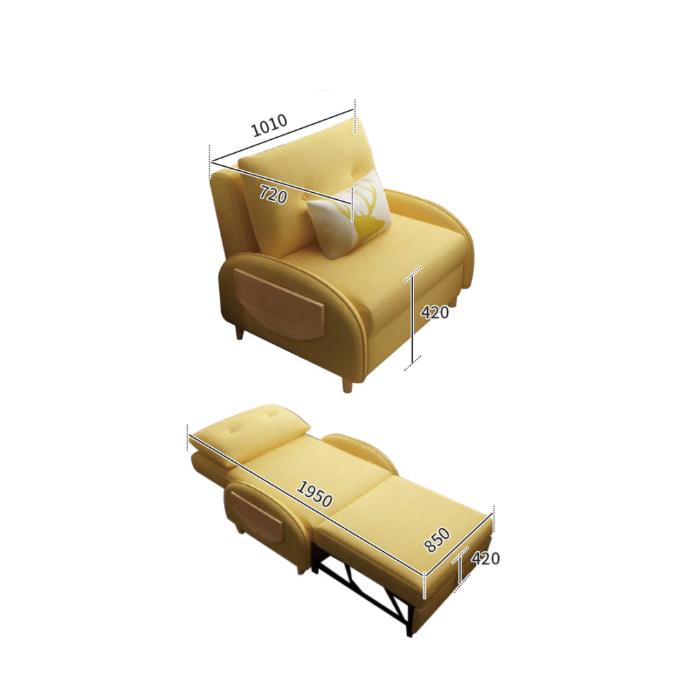 يتميز كرسي الاسترخاء بخاصية التمدد لتحويله الي سرير وبتصميم انيق ومريح . ويتميز بلمسة نهائية محايدة تنسق مع أي ديكور تقريبًا ، كما أنه مصنوع من قماش الكتان وخشب الزان والكونتر والأرجل الصلبة الخشبية لتكمل البنية القوية إلى جانب تصميم ممتع.