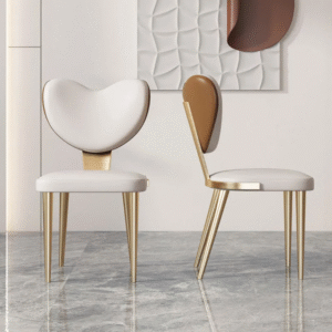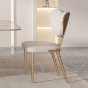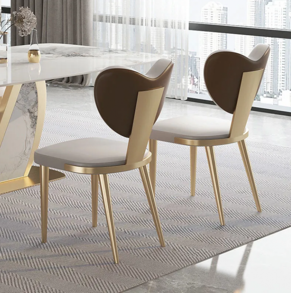 يأتي الكرسي بتصميم يجمع بين اللون الذهبي والبني والأبيض. يعطي هذا التنوع في الألوان لمسة من الأناقة والفخامة للكرسي، مما يمكنه التناغم مع الديكور الحديث والمعاصر في المنزل.