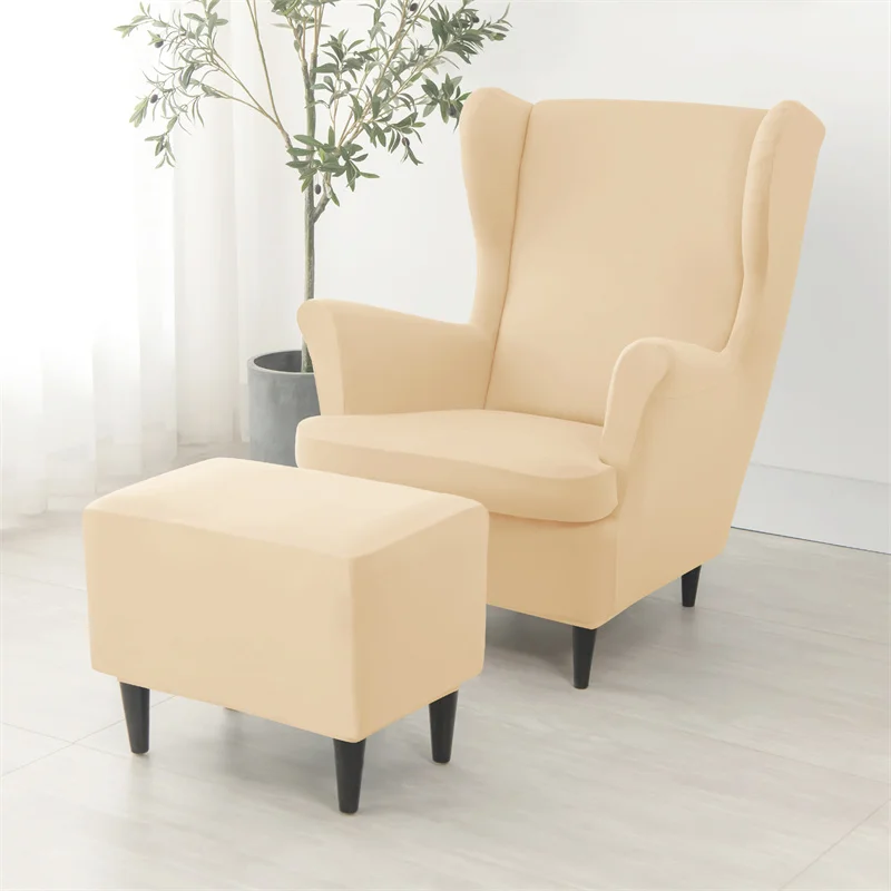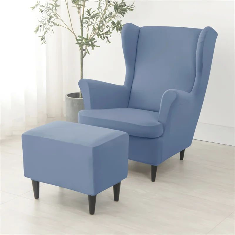 مصنع من خشب هندسي متين عالي الجودة محشو من اسفنج عالي الكثافة مغطى من قماش كتان عالي الجودة مع مسند للقدم من خشب هندسي متين عالي الجودة محشو من اسفنج عالي الكثافة مغطى من قماش كتان عالي الجودة