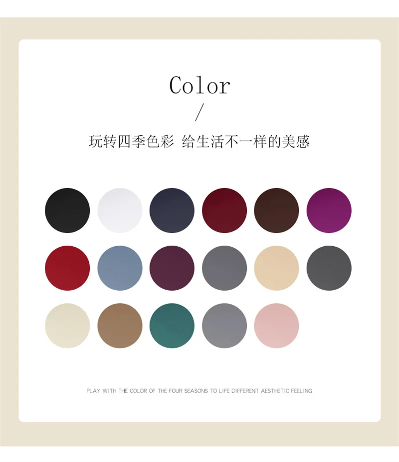| اللون | أزرق فاتح, ازرق, أزرق تركوازي, أصفر, أحمر, أخضر, أخضر غامق, أخضر فاتح, أبيض, أسود, فيروزي, بترولي, برتقالي, بني فاتح, بني, بيج غامق, بيج, تيفاني, رمادي فاتح, رمادي غامق, وردي, لون العرض |