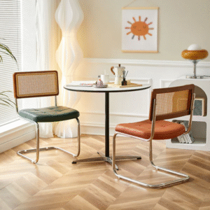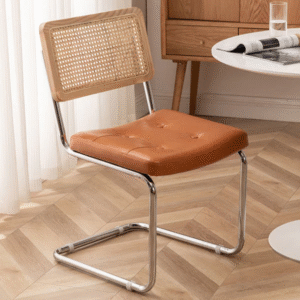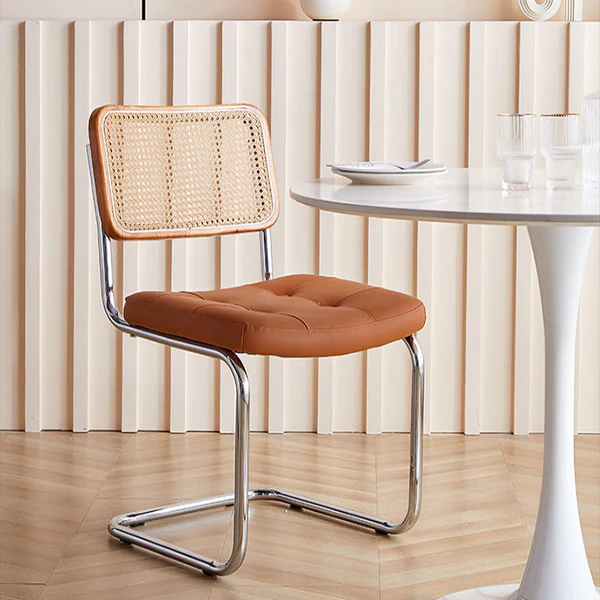 يتميز كرسي الطعام بتصميم فيتنامي مميز يعمل بشكل جيد في المهام اليومية. يتميز بلمسة نهائية محايدة تنسق مع أي ديكور تقريبًا ، كما أن سطح الكرسي المصنوع من الجلد والأرجل المعدنية تمنحه بنية متينة إلى جانب تصميم ممتع.