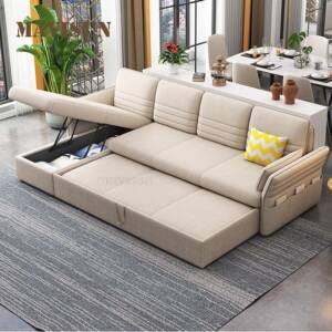 ركنة مودرن حرف L قابلة للتمدد يمكن تحويلها لسرير بسهولة بتصميم عصري هادئ يناسب مختلف الديكورات.
