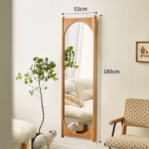 تتتميز المرآة بتصميم حديث تعمل بشكل جيد في المهام اليومية. تتميز بلمسة نهائية محايدة تنسق مع أي ديكور تقريبًا ، كما أن سطح المرآة المصنوعة من الخشب الام دي اف يمنحها بنية متينة إلى جانب تصميم ممتع.