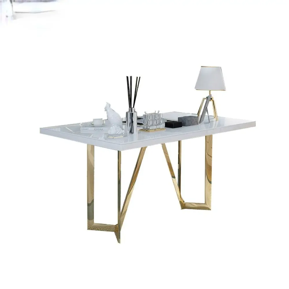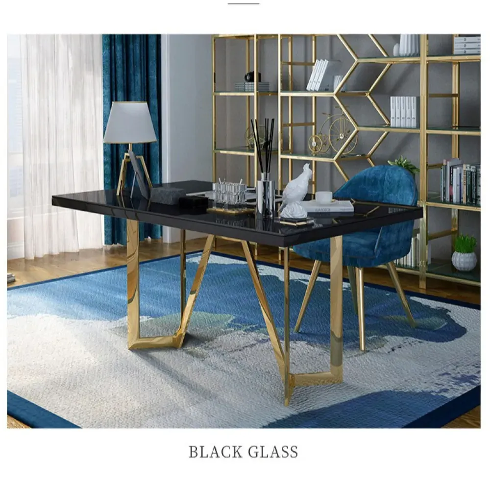 أضف لمسة من الفخامة والعملية إلى مساحة عملك مع هذا المكتب العصري والأنيق. يتميز المكتب بقاعدة ذهبية مميزة تضيف رونقًا خاصًا وتصميم جذاب يناسب مختلف الديكورات. سطح المكتب مصنوع من خشب هندسي متين عالي الجودة، مع سهولة في التنظيف وصيانة المظهر الراقي للمكتب.