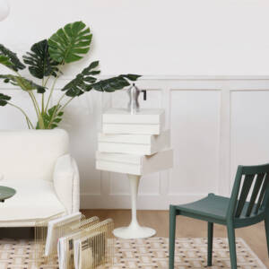 - وبفضل تصميمها العمودي القائم على قاعدة واحدة توفر لك هذه الطاولة مساحة تخزين ممتازة بدون إهدار في المساحات لتتناسب مع جميع مساحات الغرف وجميع الديكورات مما يجعلها قطعة عملية أنيقة.