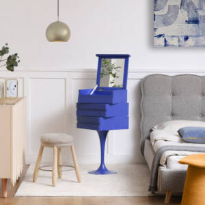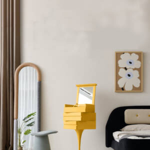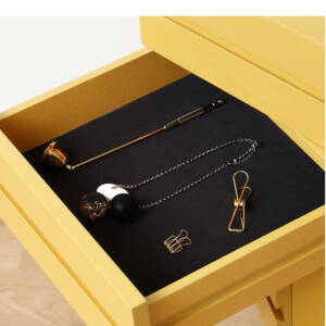 أنتقي من متجرنا مكانك وحدة ادراج جانبية بتصميم عصري وأنيق تأتي بلون أصفر جذاب مع قاعدة معدنية فخمة تمنحها ثبات وتوازن قوى بتصميمها الفريد الذي يتضمن عدة أدراج متراكبة بطريقة إبداعية تفتح بشكل جانبي لتوفير مساحة تخزين عملية ومنظمة بالإضافة إلى ذلك تحتوي على مرآة علوية مدمجة تجعلها مثالية للاستخدام لتخزين الإكسسوارات وأدوات التجميل.