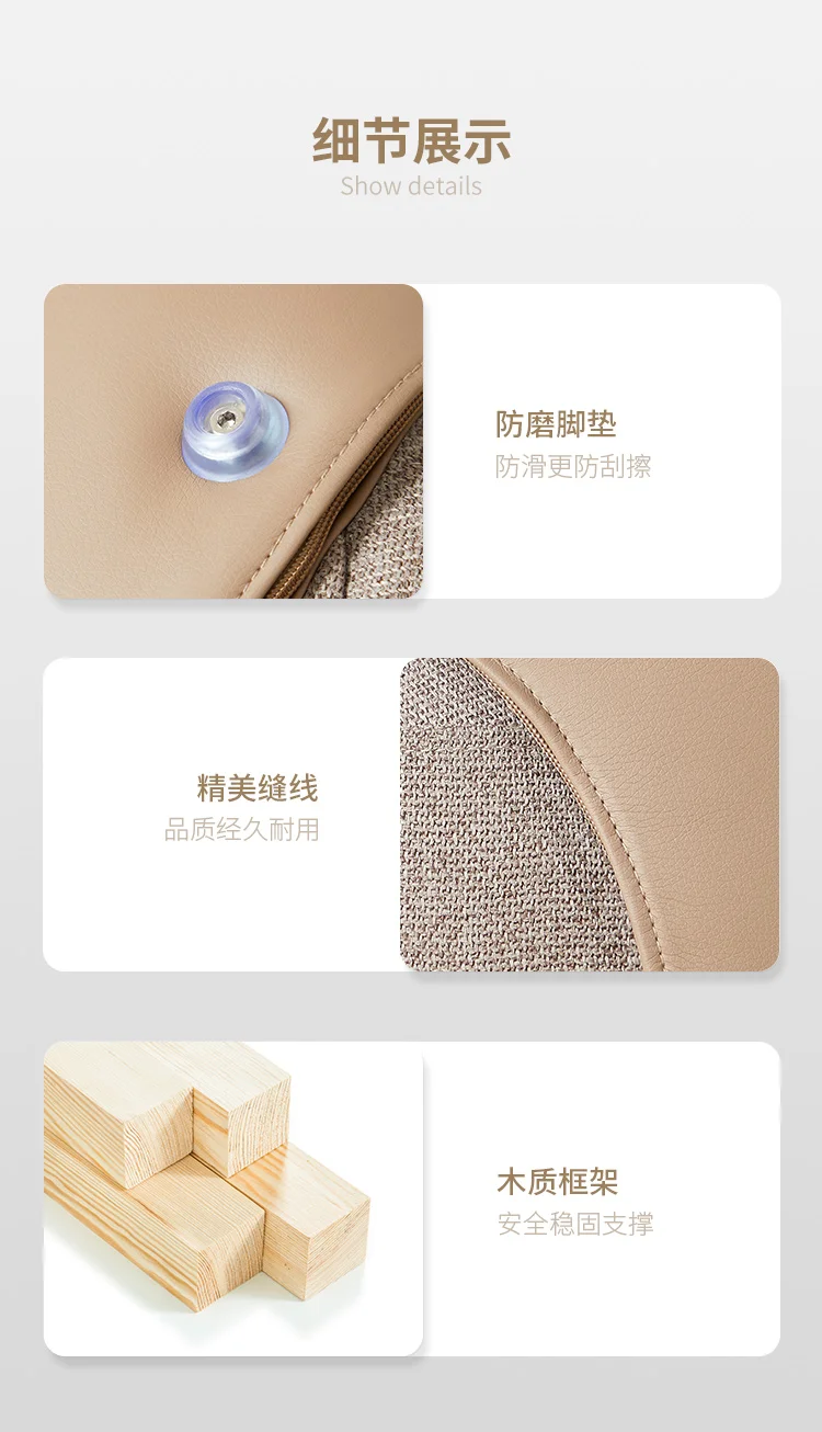 مصنع من خشب هندسي متين عالي الجودة مع مقعد محشو من اسفنج عالي الجودة مغطى من قماش كتان عالي الجودة مع ظهر من الجلد عالي الجودة