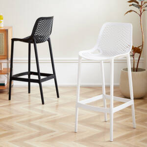 كرسي بار فاريو يجي بخطوط ناعمة وشكل شبكي يعطي تهوية وجلسة خفيفة بدون ما يفقد شكله الفخم.