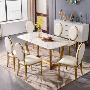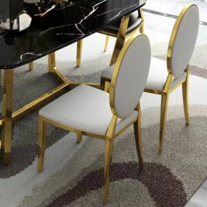 كرسي طاولة طعام بارجل ذهبية بتصميم فخم