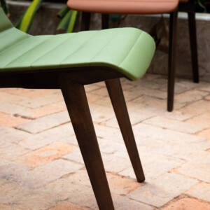 خامات كرسي الطعام : جلد – اسفنج – الخشب الهندسي المتين