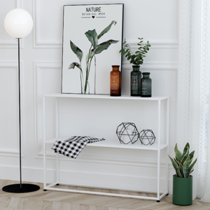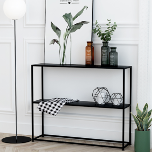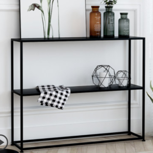 يمكن لهذه الطاولة أن تكمل ديكورك من خلال توفير مساحة عرض رائعة للتذكارات والكماليات الزخرفية في منزلك ، مصنوع من المعدن كما يحتوي على مستويات من الأرفف الأنيقة للتخزين والعرض مما يوفر لك مساحة كبيرة للتباهي بالجوائز والصور , تتوفر بلونين اسود او ابيض.