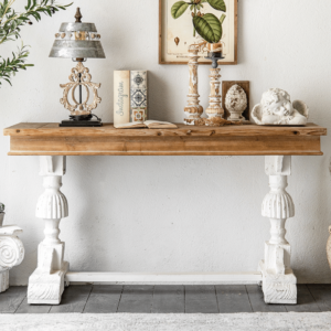 كونسول Vintage ، تتميز أيضًا بخشب صلب وهو متين و سطح واسع ،تضفي نمط ريفي إلى ديكور منزلك بنقوشها ثلاثية الأبعاد ومنحوتة يدويا
