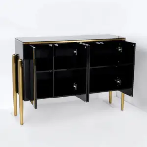 هذا البوفيه الحديث صُمّم ليكون نقطة جذب في المدخل أو الممر أو حتى خلف منطقة الجلوس، بملامح أنيقة وخطوط مرتّبة تناسب الديكورات العصرية. وجود السطح الزجاجي يعطي إحساسًا بالاتساع ويضيف لمسة راقية، بينما يمنحك مساحة عملية لوضع الأغراض اليومية مثل المفاتيح والإكسسوارات وقطع الديكور الخفيفة.