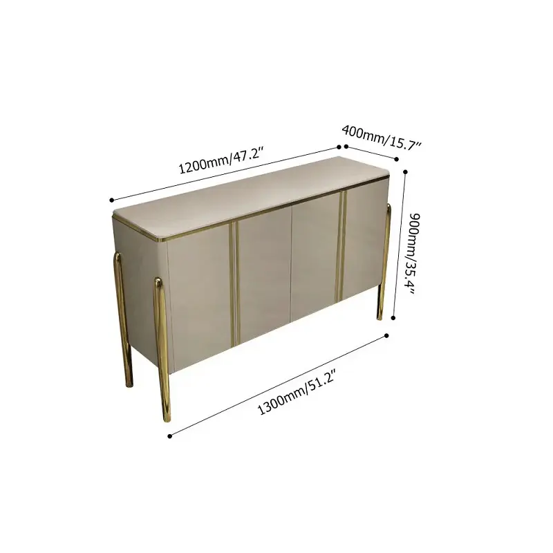 بوفيه الهيكل مصنوع من خشب متين يمنح ثباتًا جيدًا مع استخدام متكرر، والقاعدة معدنية لتدعيم الاتزان ودعم التحميل بشكل أفضل. السطح الزجاجي يساعدك على التنظيف بسرعة، ويقلل من آثار الاستخدام المعتاد مقارنة بالأسطح التي تتطلب عناية خاصة.