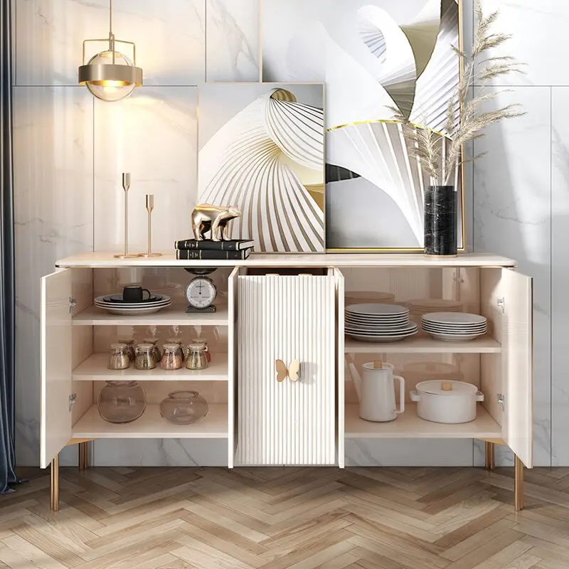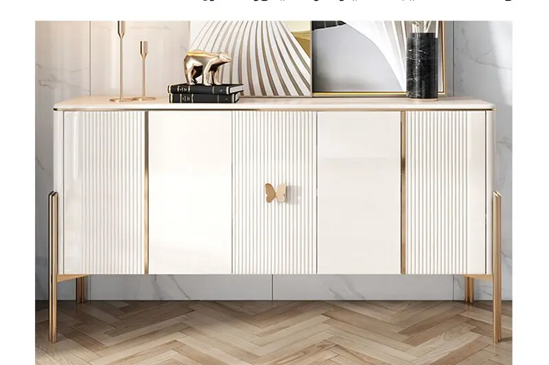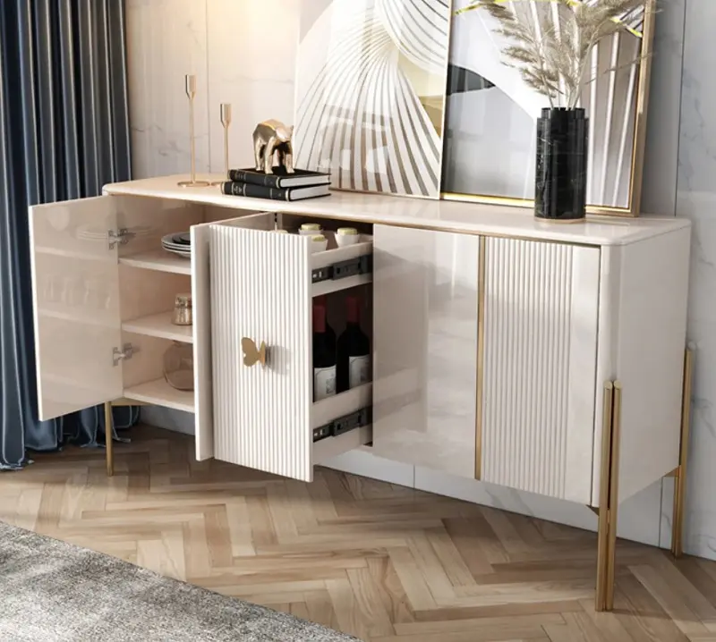 المدخل نقطة استقبال مهمة، وهذا البوفيه يساعدك على ترتيبها بشكل عملي. وجود سطح علوي واضح ومساحة تخزين داخلية يخفف الفوضى اليومية، ويجعل الأشياء الأساسية في مكان واحد بدل تشتتها بين الطاولات. كما أن شكله مناسب للمساحات الضيقة في الممرات لأنه يمنح فائدة عالية دون أن يبدو مزدحمًا بصريًا.