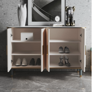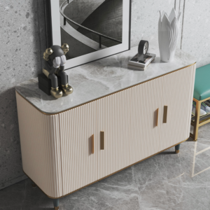 بوفيه تصميم حديث متطور قاعدة من الفولاذ المقاوم للصدأ مطلية ، سطح من مادة فاخرة من الرخام