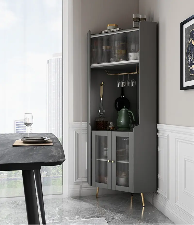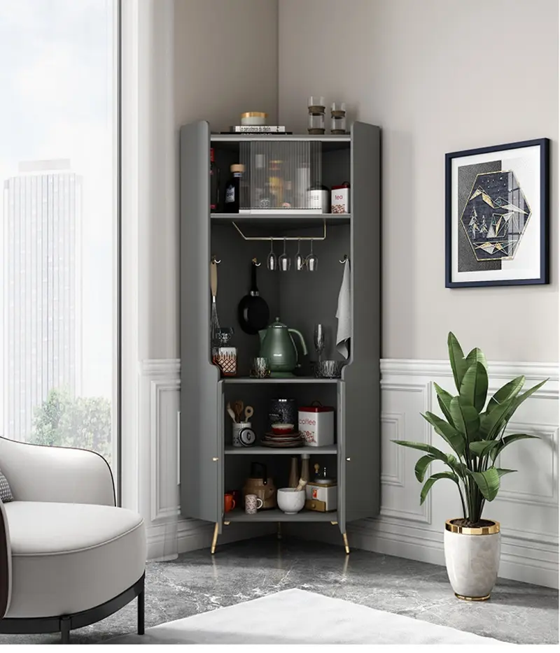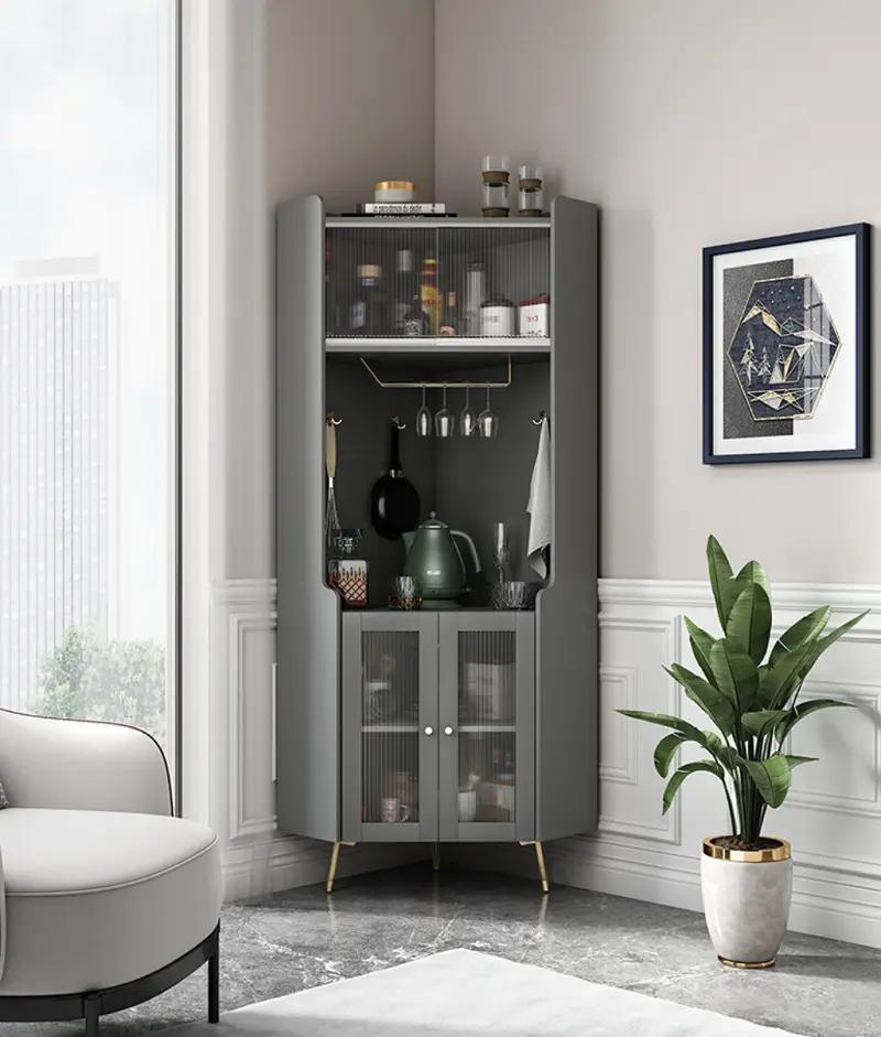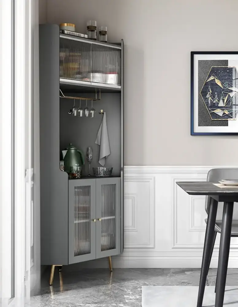 حلول تخزين شكلها أنيق وتتحمّل الاستخدام اليومي، خصوصًا مع كثرة أدوات الضيافة والقهوة. الخزانة تمنحك ترتيبًا واضحًا وسهولة وصول، وتساعد على إبقاء المكان مرتبًا بسرعة حتى مع كثرة الحركة في المطبخ أو غرفة المعيشة. كما أن تصميمها العملي يجعلها خيارًا مناسبًا للشقق والمساحات المتوسطة؛ تستفيد من الارتفاع لتوفير تخزين أكبر بدون أن تزدحم الأرضية.