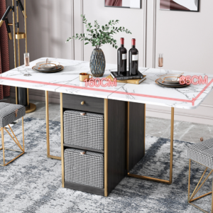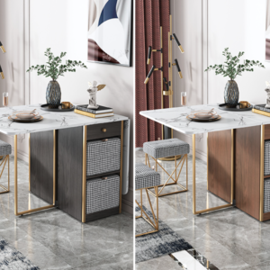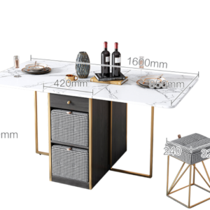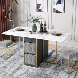 طاولة طعام قابلة للطي مع ٤ كراسي .طاولة طعام قابلة للتمديد ، فإنها تحتل حوالي 0.35 مم ، مما يوفر المساحة ويمكن تطبيقه على جميع أنواع المنازل. عندما يتم تمديد الطاولة ، يمكن أن تستوعب بسهولة من 6 إلى 8 أشخاص . توجد بكرات أسفل طاولة الطعام من السهل تحريكها ، اقتني هذه الطاولة لإضفاء لمسة لغرفة الطعام . يمكنك تنظيفها بمسحة رقيقة فقط عند الحاجة.