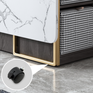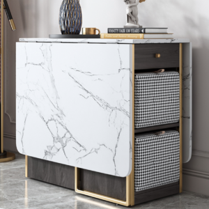 الخامات الرئيسية : مصنوعة من الخشب الهندسي المتين مع سطح رخام سنو وايت ، قماش الكرسي من الكتان ،قطن مسامي ، إسفنج ،قدم من الحديد