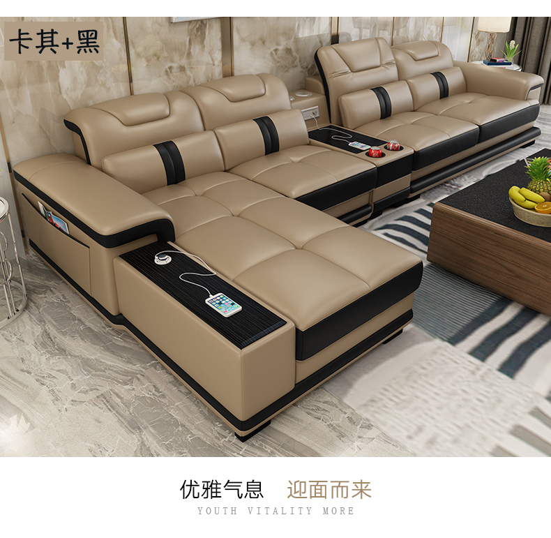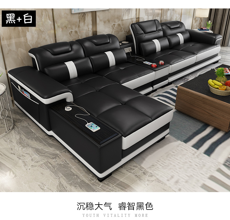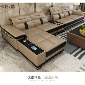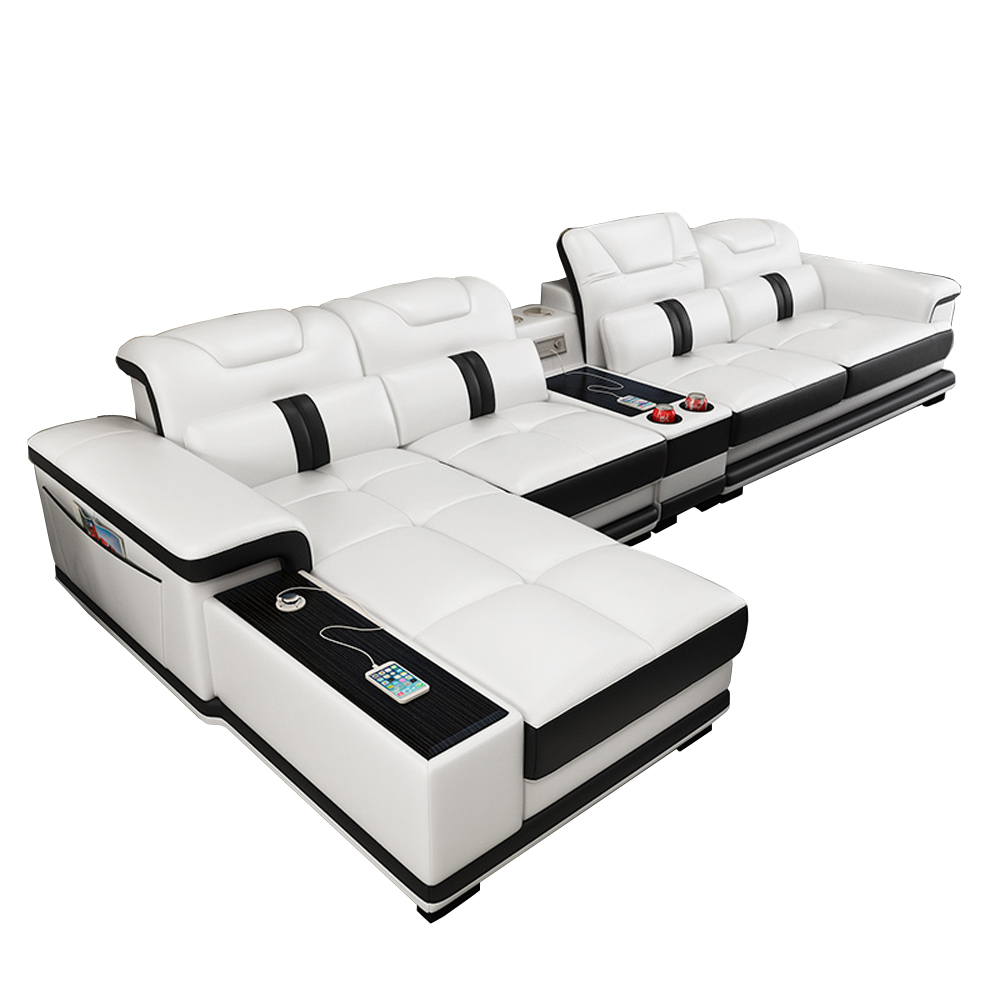 مصنع من خشب هندسي متين عالي الجودة محشو من اسفنج عالي الكثافة والمرونة مغطى من جلد عالي الجودة مع مكبر صوت بلوتوث ومنافذ USB