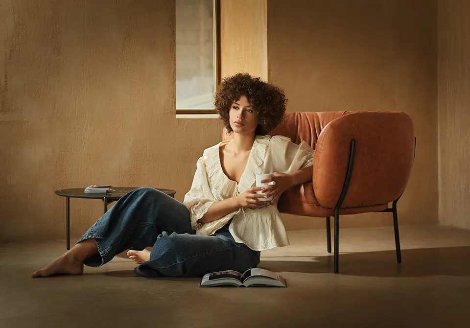 يعكس تصميم الكرسي البساطة والتنوع والمظهر الرسمي والتعرف البصري والدفء في لمحة واحدة