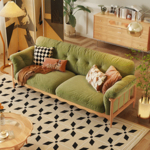 تتميز الكنبة بتصميم مميز ومريح للأسترخاء . وتتميز بلمسة نهائية محايدة تنسق مع أي ديكور تقريبًا ، كما أنها مصنوعة من القماش عالي الجودة والقاعدة الصلبة المصنوعة من الخشب عالي الجودة لتكمل البنية القوية إلى جانب تصميم ممتع.