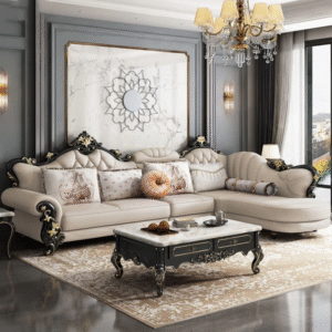 تتميز الكنبة الزاوية بتصميم مميز ومريح للأسترخاء . وتتميز بلمسة نهائية محايدة تنسق مع أي ديكور تقريبًا ، كما أنها مصنوعة من الجلد عالي الجودة والقاعدة الصلبة المصنوعة من الخشب متين عالي الجودة لتكمل البنية القوية إلى جانب تصميم ممتع.