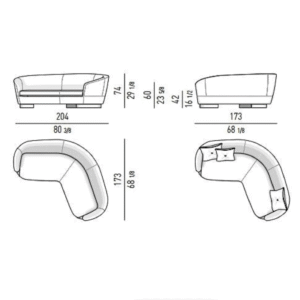 المقاس : العرض 204 سم* العمق 173 سم* الإرتفاع 74 سم