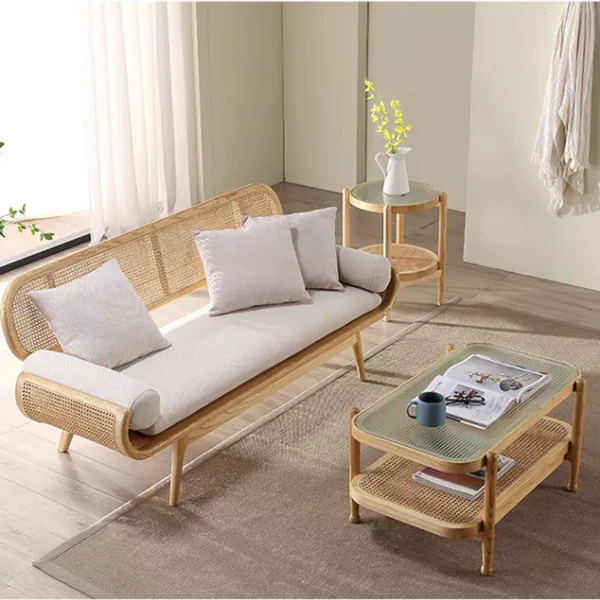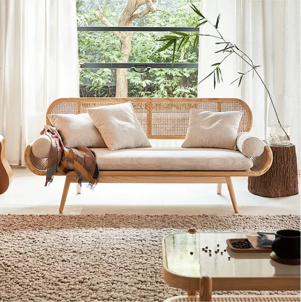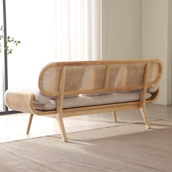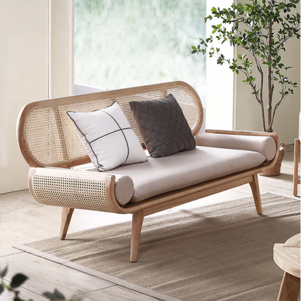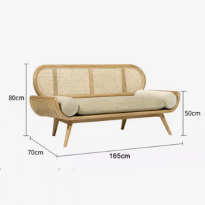 تتميز الكنبة بتصميم مميز ومريح للأسترخاء . وتتميز بلمسة نهائية محايدة تنسق مع أي ديكور تقريبًا ، كما أنها مصنوعة من الروطان عالي الجودة والقاعدة الصلبة المصنوعة من الخشب عالي الجودة لتكمل البنية القوية إلى جانب تصميم ممتع