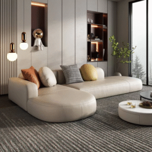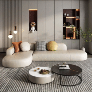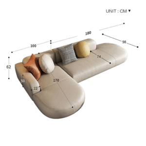 تتميز الكنبة الزاوية بتصميم مميز ومريح للأسترخاء . وتتميز بلمسة نهائية محايدة تنسق مع أي ديكور تقريبًا ، كما أنها مصنوعة من القماش عالي الجودة والقاعدة الصلبة المصنوعة من الخشب متين عالي الجودة لتكمل البنية القوية إلى جانب تصميم ممتع.