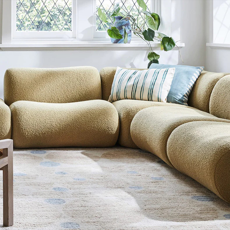 تتميز الكنبة بتصميم مبتكر ومريح للأسترخاء . وتتميز بلمسة نهائية محايدة تنسق مع أي ديكور تقريبًا ، كما أنها مصنوعة من القماش عالي الجودة والقاعدة الصلبة المصنوعة من الخشب متين عالي الجودة لتكمل البنية القوية إلى جانب تصميم ممتع
