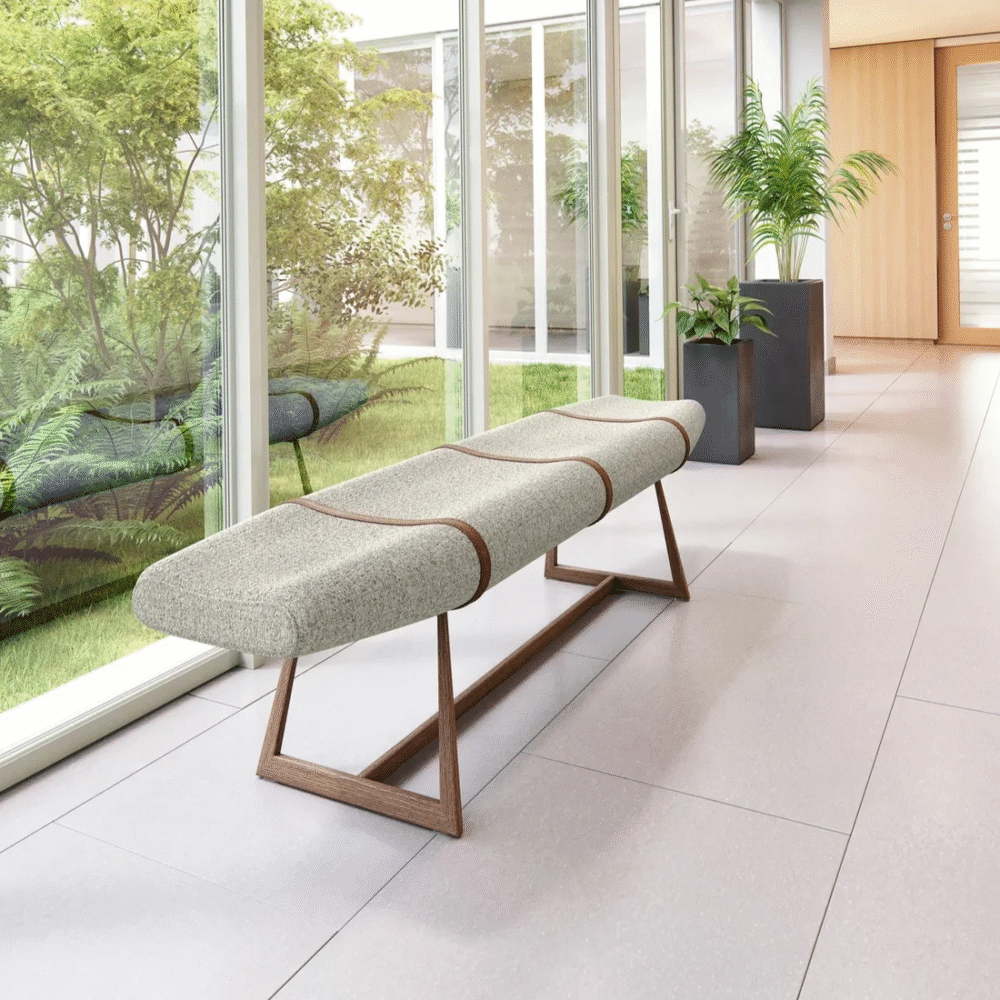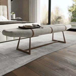 يتميز مقعد البنش بتصميم مميز ومريح للأسترخاء . ويتميز بلمسة نهائية محايدة تنسق مع أي ديكور تقريبًا ، كما أنه مصنوع من القماش الكتان والقاعدة الصلبة الخشبية لتكمل البنية القوية إلى جانب تصميم ممتع.