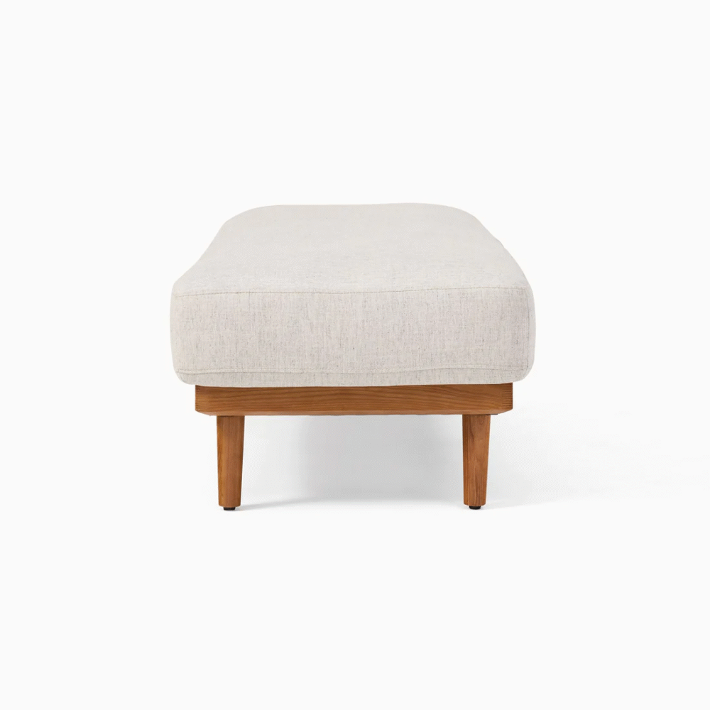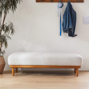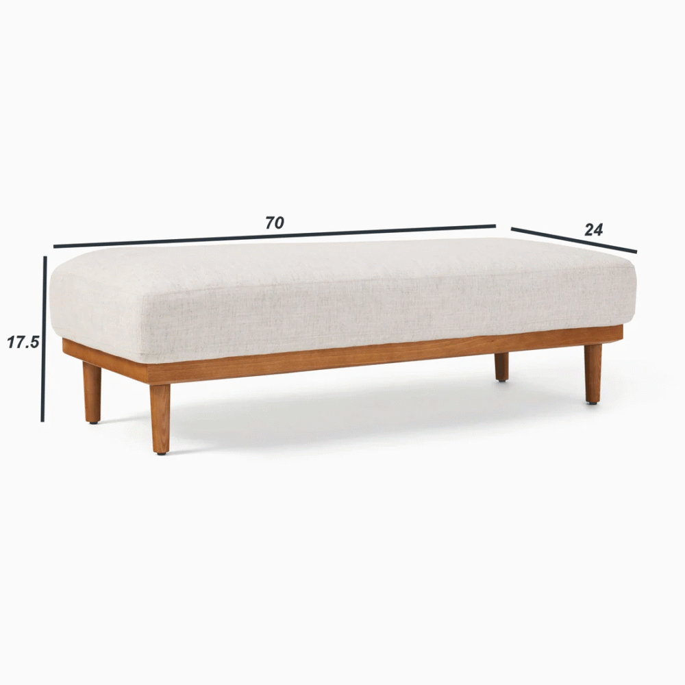 يتميز مقعد البنش بتصميم مميز ومريح للأسترخاء . ويتميز بلمسة نهائية محايدة تنسق مع أي ديكور تقريبًا ، كما أنه مصنوع من القماش الكتان والقاعدة الصلبة الخشبية لتكمل البنية القوية إلى جانب تصميم ممتع.
