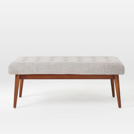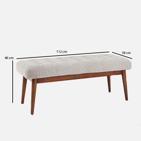 يتميز مقعد البنش بتصميم مميز ومريح للأسترخاء . ويتميز بلمسة نهائية محايدة تنسق مع أي ديكور تقريبًا ، كما أنه مصنوع من القماش والقاعدة الصلبة الخشبية لتكمل البنية القوية إلى جانب تصميم ممتع.