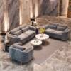 يتكون الطقم من كرسي مفرد + اريكة مزدوجة + اريكة ثلاثية