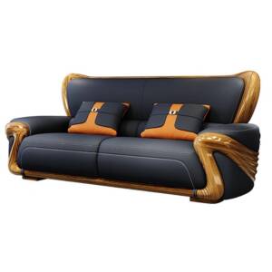 الخامات الرئيسية : مصنوعة من الخشب الهندسي المتين مبطن بالاسفنج عالي الكثافة ومغطي بالجلد الايطالي الناعم الحريري مع لمسات من الستيل المذهب الصلب