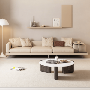 أريكة مع طاولة متصله Royal Court ، تصميم حديث ، طاولة جانبية دوارة 360 درجة ، متعددة الطبقات من الخشب الصلب ، مما يخلق إحساسًا واضحًا بالمساحة وأكثر استرخاءً ،نسيج قماش تقني صديق للجلد تتم معالجة القماش بواسطة تقنية التدفق المزدوج الفائقة للواجهة النانوية لتشكيل طبقة على سطح القماش ، . مظهر يشبه الجلد واللون والملمس ، حشوة المقعد هي حشوة إسفنجية عالية الكثافة ، أقدام من الفولاذ المقاوم .