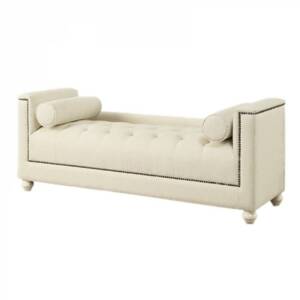 اريكة غرف نوم فاخرة بتصميم مودرن تخطف الأنظار وتزين المكان بذوق رفيع وأناقة بشكلها الراقي وهيكلها الانسيابي المصنوع بعناية ليعطيك إحساس بالراحة بفضل تنجيدها المخملي الناعم الذي يضيف لمسة دفء وفخامة ولونها الهادئ يندمج بسهولة مع أغلب ديكورات البيت كما أن الأرجل المعدنية بلونها الذهبي تعطي الكنبة لمسة مودرن مميزة وتضمن لك ثبات وجودة تدوم سنين.