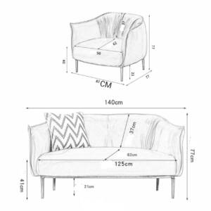 | المقاس | كرسي مفرد عرض 82 سم, كنبة ثنائية عرض 140 سم |