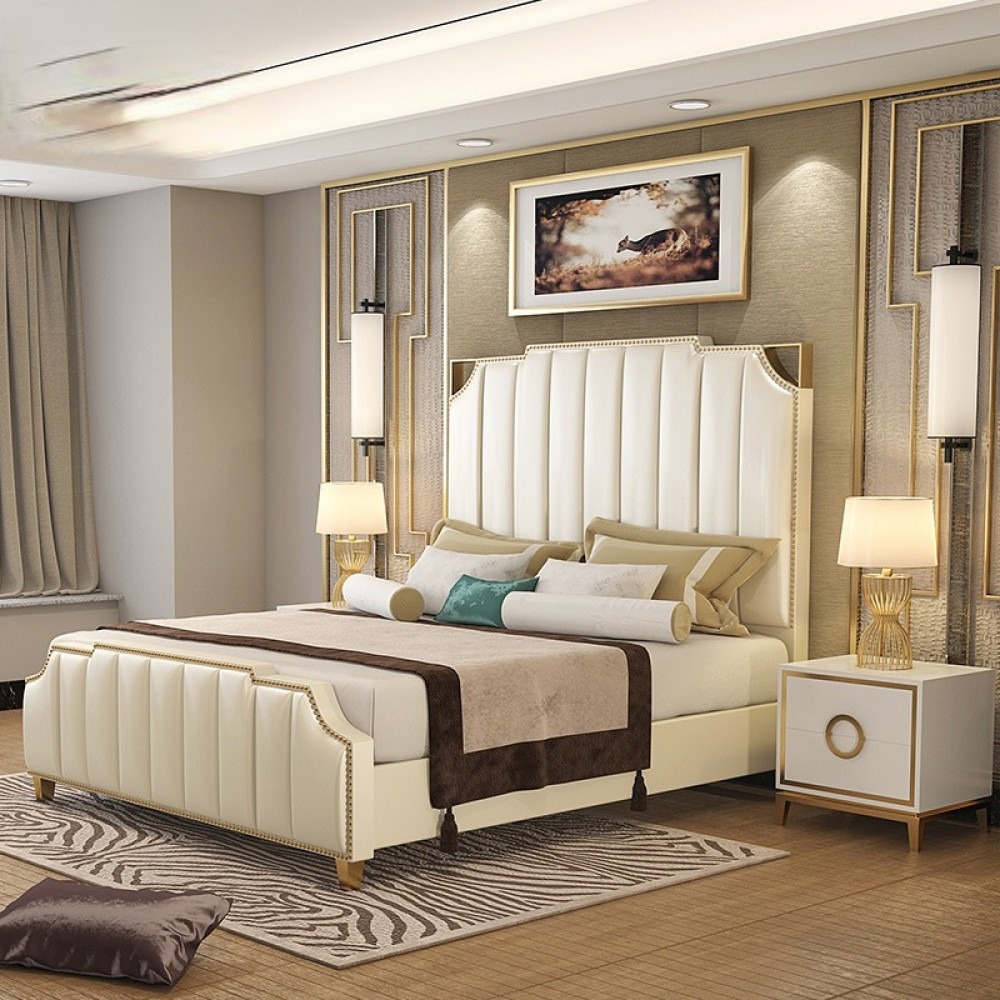 - سرير فندقي مودرن يتميز بتصميم يناسب غرف النوم الفاخرة ويعكس الذوق الراقي.