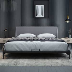- يتميز السرير بأن ظهره مغطى بأجود أنواع الجلود ما يجعله اختيار ممتاز لمن يبحثون عن التصميم العصري والأناقة معًا في غرفة النوم.