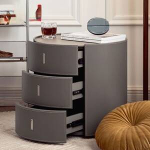 تأتي طاولة سرير جانبية مصنوعة من خشب هندسي متين، مغلف بطبقة من الجلد الإيطالي الفاخر، ما يضيف مظهراً راقياً يليق بأذواق عشاق الديكورات الراقية. استخدام المواد عالية الجودة لا يضمن فقط المتانة وطول العمر، بل يمنح مظهراً فريداً وأنيقاً يناسب مختلف الأذواق.