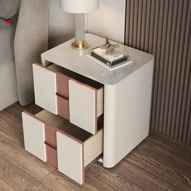 تأتي مع درجين واسعين يوفران مساحة كافية لتخزين الأغراض الأساسية مثل الكتب، الهاتف، شاحن الهاتف، وأي مستلزمات أخرى ترغب في إبقائها قريبة منك. هذه الميزة تجعلها عملية وضرورية لمن يبحث عن طاولة سرير جانبية تجمع بين الجمال والفائدة العملية. الأدراج قابلة للسحب بسهولة، مما يسهل الوصول إلى محتوياتها.